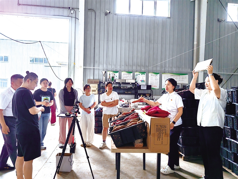 大学生农业职业经理人李龙跃直播展示新鲜红薯品质。 陈慧琳 摄