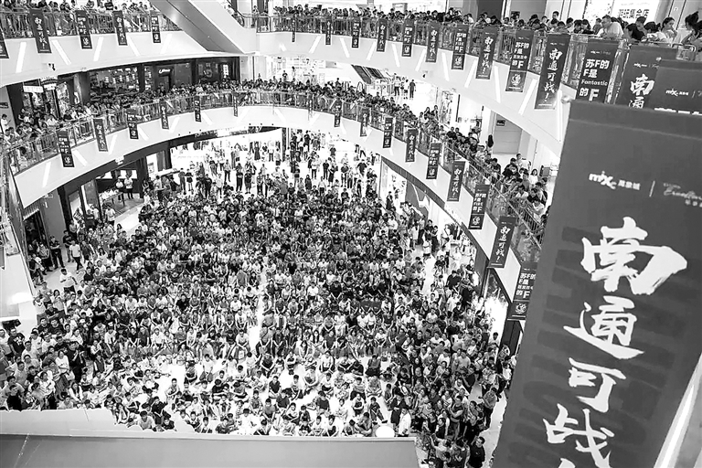 6月29日,市民、球迷在江苏省南通市一商场内观看“苏超”比赛直播。 新华社记者 李博 摄