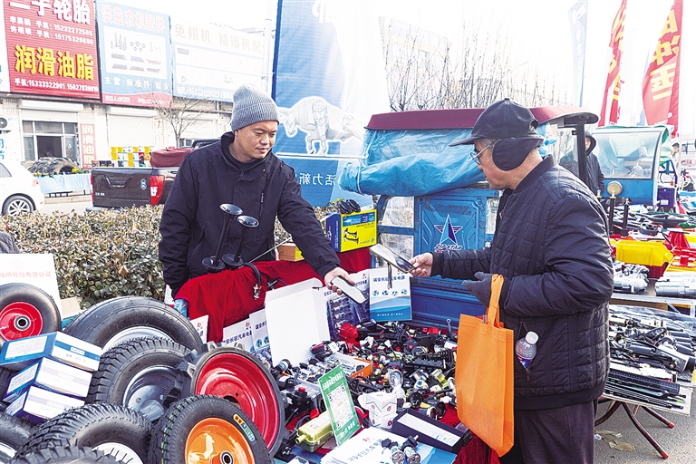 展会现场划分整机展区、零部件展区、润滑油展区等多个功能区域,展品覆盖农业生产全流程需求,从核心部件到通用耗材一应俱全,充分彰显庞口“买全国、卖全国”的强劲产业优势。“这次我们带来了100多个品种,促成了10余项订单,展会效果非常明显。”庞口荣希达农机配件销售公司经理王龙介绍。“过去来庞口非常零散,一家一家挨个转,通过这个展会归拢到一起,我半天时间就把想要的产品转完了。”呼和浩特市采购商渠耀全说。