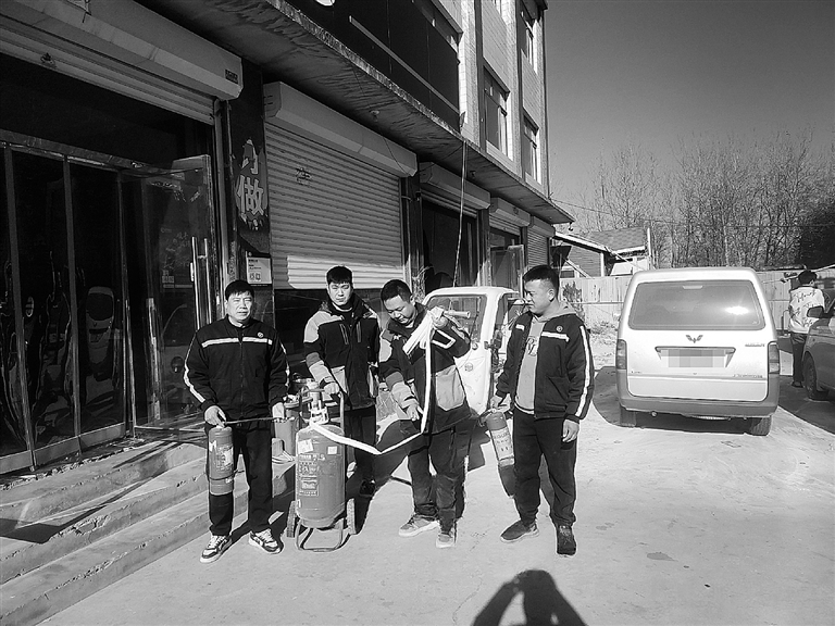 没有犹豫和慌乱,仓管员关建力迅速判断情况,沉着指挥:“给隔壁打电话!拿灭火器!接水!”四人迅速分工:关建力、刘浩、张金武直奔消防柜取灭火器,金南海则跑向卫生间拎水桶、端脸盆——每月两次的消防安全培训,在此刻化为本能。