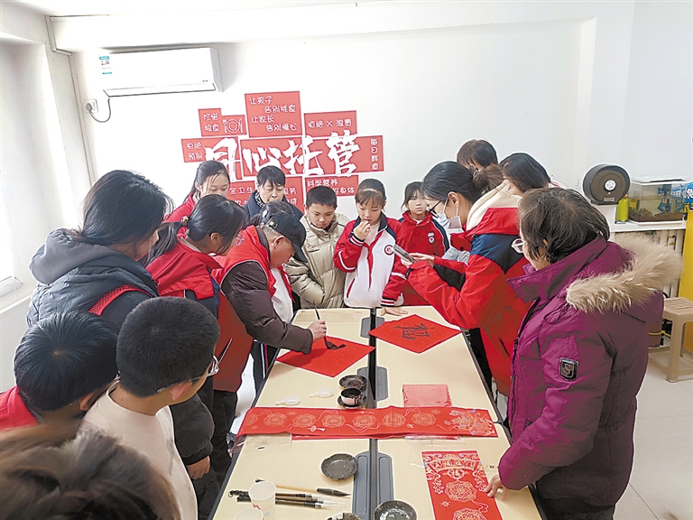 本报讯(新畿辅-保定晚报记者任奕葳 通讯员白宇)12月29日,凛冬寒意渐浓,竞秀区依棉社区的日间照料站内却暖意涌动。该社区联合同心托管,举办“迎新年 写福字”志愿活动,老少携手执笔挥毫,苍颜白发的慈祥笑意与稚气孩童的清脆欢语交织相融,为冬日社区晕染出浓郁醇厚的年味与温情。