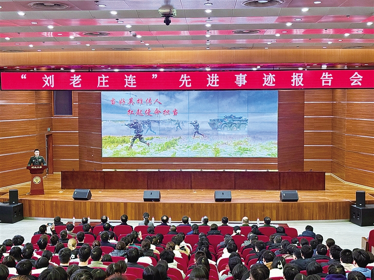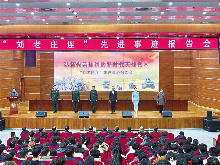 本报讯(新畿辅-保定晚报记者刘琦)1月9日,“时代楷模”陆军某合成旅合成二营装甲步兵一连(“刘老庄连”)先进事迹报告会在河北大学举行。保定市党政机关及社会各界代表500余人参加报告会,共同聆听英雄连队的先进事迹,感悟历久弥新的精神伟力。