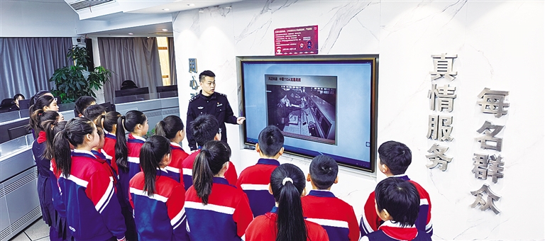 “20多年前,接警员靠纸笔记求助、背电话本联系派出所,连咱们保定的每条小巷子都得熟记;现在输入地址,出警民警、调度信息一目了然,处置速度比以前快了好几倍。”王超阳指着智能指挥屏幕,揭秘保定“110”从“手工”到“智能”的蜕变,让孩子们深刻感受到“110”所承载的不仅仅是简单的数字,更是一线民辅警长年累月的坚守与付出。
