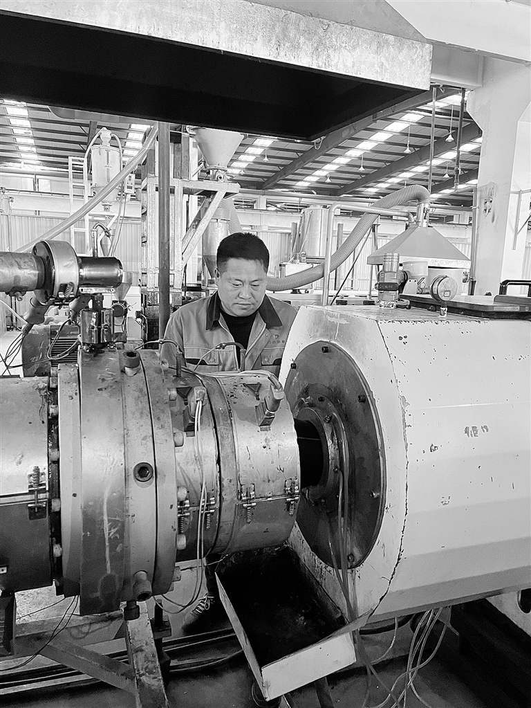 此后,刘向向的技术创新脚步从未停歇。2021年9月,他带领团队将PE管材生产线真空泵改造为变频控制,每年为公司节省电费约7.2万元;2022年,重新设计三条PVC管材生产线工艺,让每条线产能提升10%;2023年,提出烤箱改造、扩口机塞体分体式改造、加装震动筛等多项方案,逐一解决生产痛点,降低生产成本。