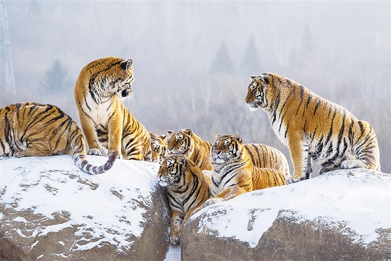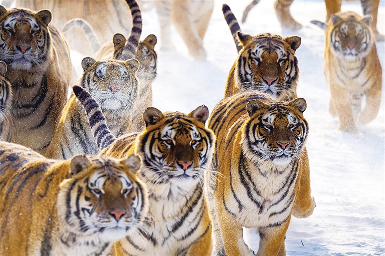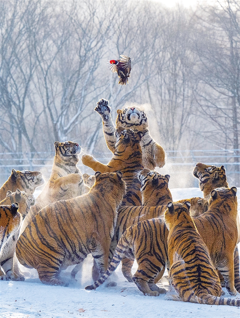 寒冬时节,位于黑龙江省海林市的横道河子东北虎林园内白雪皑皑,生活在此的东北虎在雪地上追逐嬉戏,显现威猛之姿。 新华社发(何华文 摄)