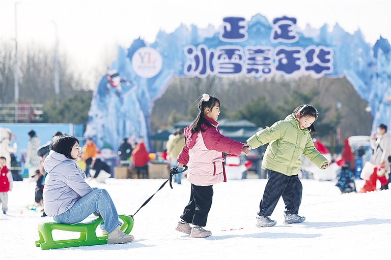 ▲小朋友们在河北省石家庄市正定冰雪嘉年华玩耍。 新华社发(梁子栋 摄)