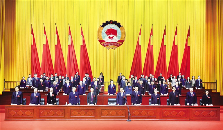 2月5日下午,政协保定市第十四届委员会第六次会议圆满完成各项议程,在雄壮的国歌声中闭幕。 新畿辅-保定晚报记者 曹云鹏 王田明 摄