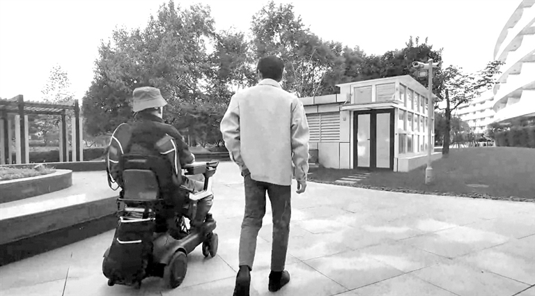 2025年,四肢瘫痪患者(左)通过脑机接口系统“意念”控制轮椅。 (中国科学院脑科学与智能技术卓越创新中心供图)