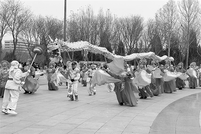 高碑店市2026年百姓村晚首场演出现场,秧歌、舞狮热场。 米彤 摄