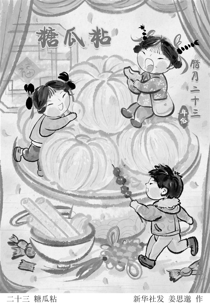 二十三,糖瓜粘。 新华社发 姜思邈 作
