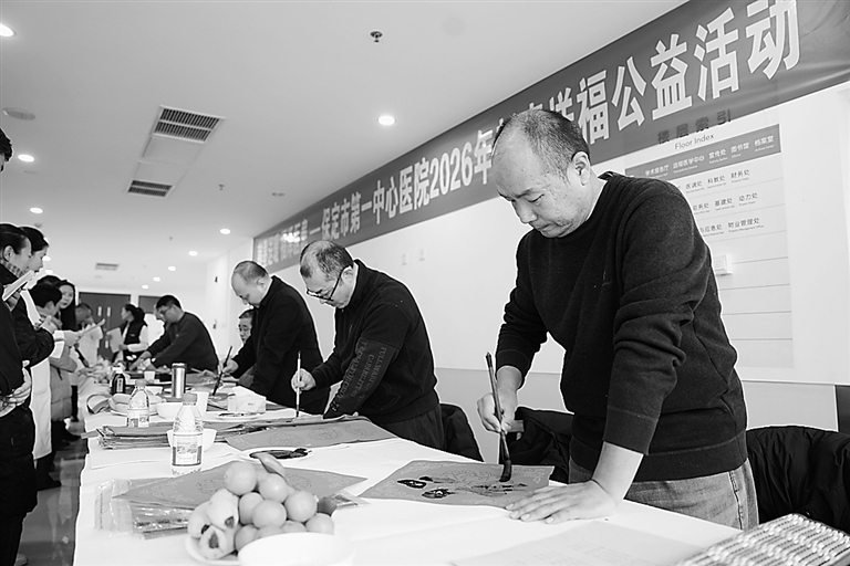 市第一中心医院近日举办“翰墨送暖福泽医护”新春送福活动,特邀中国书法家协会及保定市书法家协会的书法名家现场挥毫,为辛勤工作在一线的医务人员书写春联与“福”字,送上诚挚的新春祝福。 夏凡 摄
