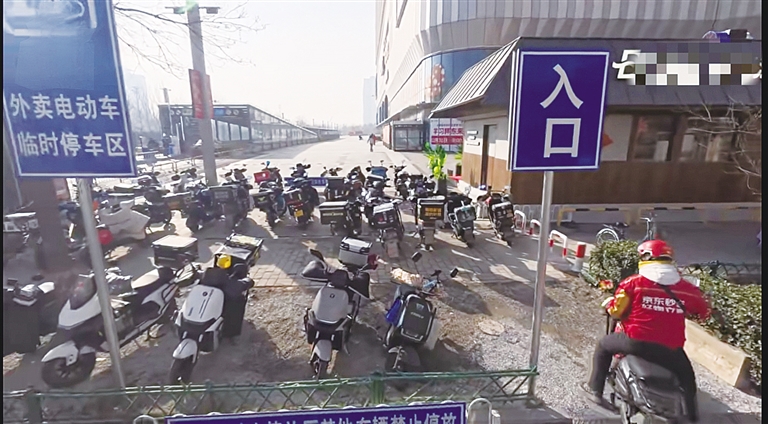 爱情广场是保定近两年新兴的商圈,餐饮店铺密集,外卖订单扎堆。“像这种大商圈,我们之前不敢同时抢多单。”刘刚说,现在有了外卖骑手专属停车区,之前的顾虑也没了。