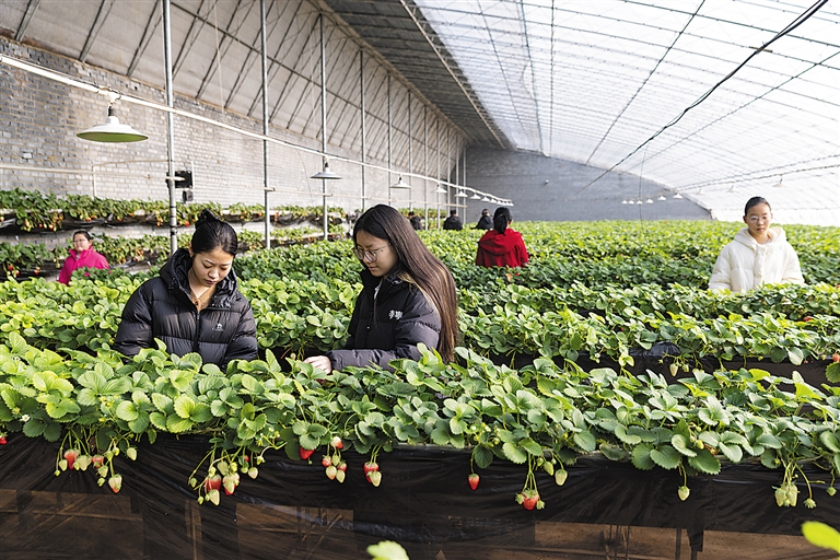 以草莓大棚为起点,邢家南镇通过“党支部+农户”模式,串联起各类果园,正打造四季果香不断的“新年果园”,实现了从农产品生产到农旅品牌体验的升级。