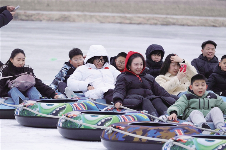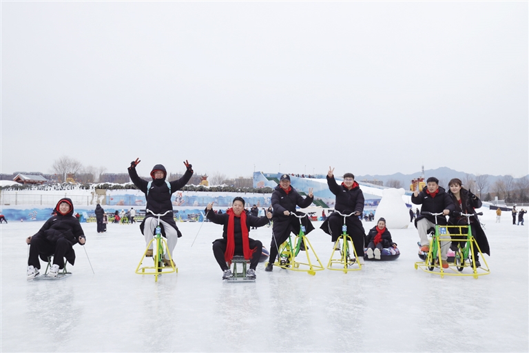 涞源湖冰场银装素裹、人头攒动,冰雪大滑道、冰爬犁、冰上自行车、雪地碰碰球等十余项冰雪体验项目各展趣味,现场氛围火热非凡。体育冠军与五超队员结伴打卡体验,或在滑道上极速飞驰、冰屑飞溅,或在冰爬犁上你追我赶、竞速争先,或乘冰上碰碰车趣味对撞、欢笑不断,尽显冰雪运动的独特魅力与欢乐氛围。