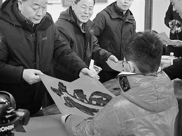 丽景蓝湾西区社区翰墨飘香送祝福。 张祎 摄