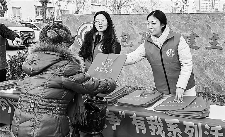 风帆三区社区联合市总工会为居民送祝福。 李怡然 摄