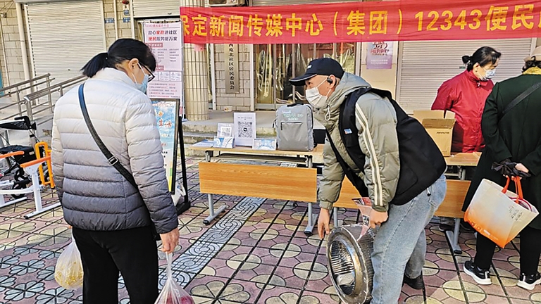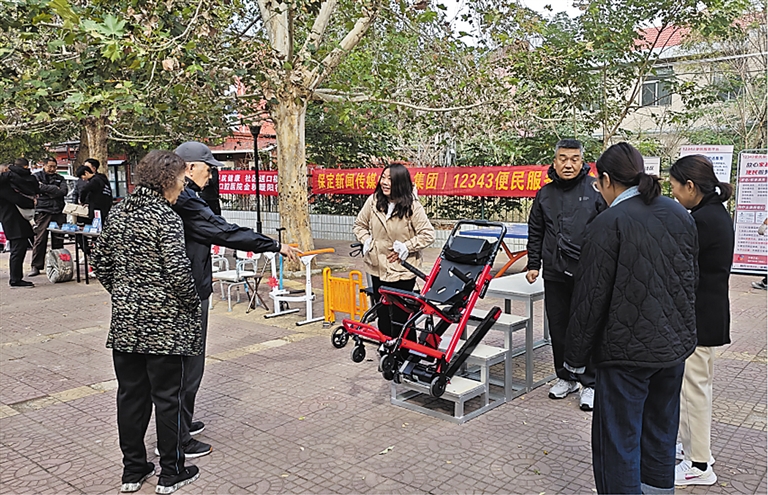 ▲活动中,12343工作人员为居民介绍适老化产品。