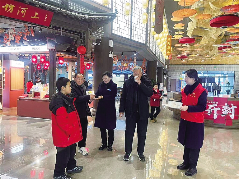 在G30连霍高速开封“宋文化”主题服务区,工作人员为过往司乘人员送上暖心姜茶。 受访者供图