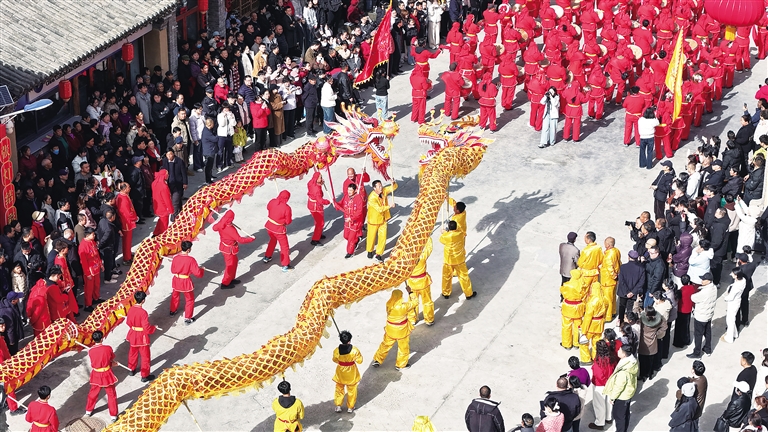 龙舞激昂绕村行,锣鼓震荡响山村。2月21日是农历正月初五,阜平县骆驼湾村沉浸在一片欢乐的氛围中,四面八方的游人在这里感受着浓浓的年味。