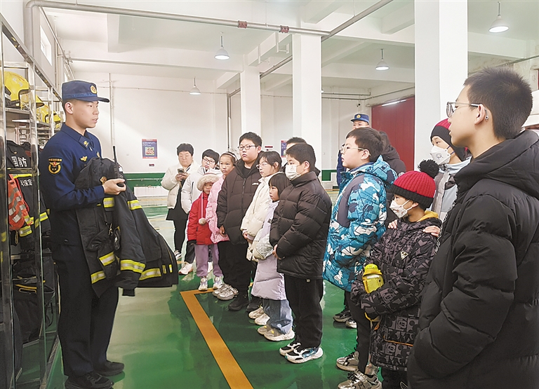 寒假里,竞秀区康泽园社区新时代文明实践站日前联合七一路消防站开展消防实践活动。消防员向20多名儿童讲解火灾防范、火场逃生等知识,孩子们体验试穿全套灭火战斗服,并登上消防车,近距离认识各类消防车辆与救援器材。此次沉浸式社会实践活动不仅让孩子们实际感受消防工作的特殊性,更深刻领会到消防安全在日常生活中的重要性。