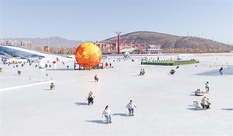 在七山滑雪旅游度假区,众多冰雪爱好者畅享滑雪乐趣。高级道上,滑雪者飞驰而下,体验速度与激情。初级道上,亲子家庭在教练指导下快乐体验,欢声笑语不断。涞源湖景区冰场人气火爆,冰滑梯、冰爬犁、冰上自行车等项目深受欢迎,市民游客尽情享受冰上运动的欢乐。