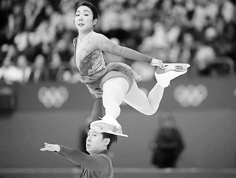 2月16日,中国选手隋文静(上)/韩聪在双人滑自由滑比赛中。 新华社记者 薛宇舸 摄