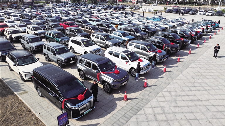 2月24日,马年春节后首个工作日,我市召开现代化品质生活之城高质量发展表彰暨优化营商环境大会。图为一排排作为奖品的长城汽车整齐排列。 新畿辅-保定晚报记者 曹云鹏 摄