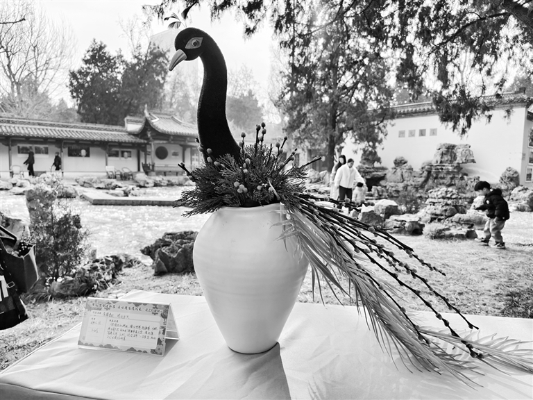 “本次共展出竞秀公园职工创作的16件花艺作品,作品巧用园林废弃物等多元材料,经匠心构思与创作,将寻常草木化为独具韵味的花艺作品,让废旧枯枝重焕新生。市民游客既可在作品间感受新春的喜庆暖意,又能领略变废为美的巧思与花艺创作的独特魅力,在草木繁花间邂逅新年美好。”保定工匠、竞秀公园技师王鹏说。