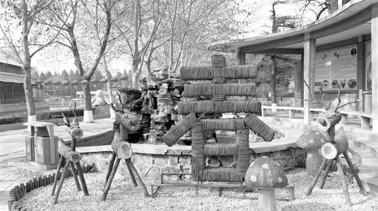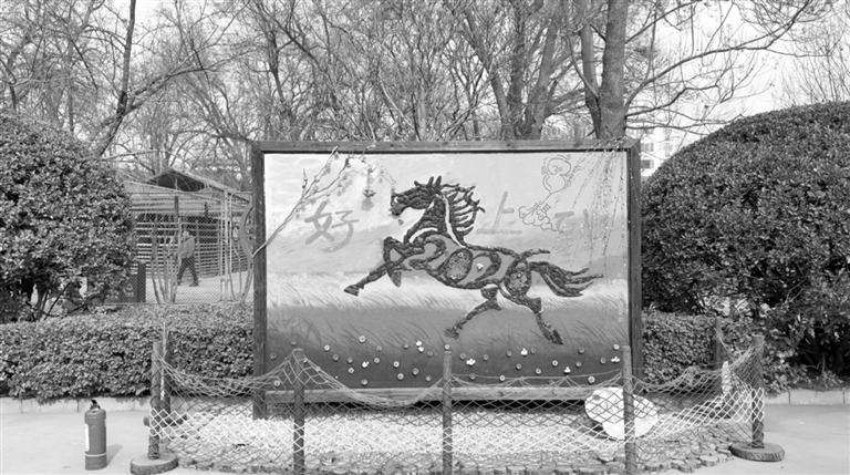 最富童趣与手工温度的景象出现在动物园。园林工人们巧思妙用修剪下的树枝、木桩等废弃物,自主设计并亲手制作了“金鱼送福”“好‘柿’马上有”“福鹿迎春”等七组憨态可掬、寓意吉祥的地景雕塑,分散在园内成为热门打卡点。东门口,十棵树木穿上了工作人员精心编织的缤纷“毛衣”,“瑞马”等针织图案与自然树干相映成趣,以柔软创意诉说着“马年织暖,森语新章”的温馨故事,引来众多家庭合影留念。