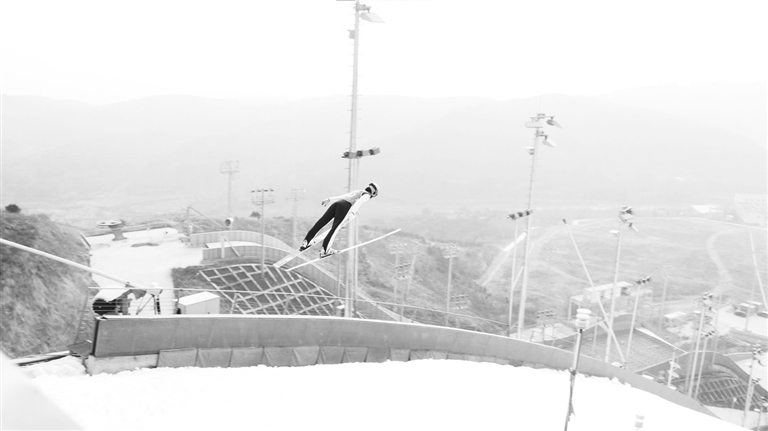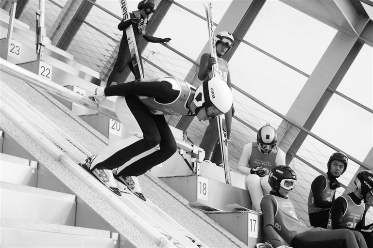 运动员凌空跃雪,竞展英姿。 邸威 摄