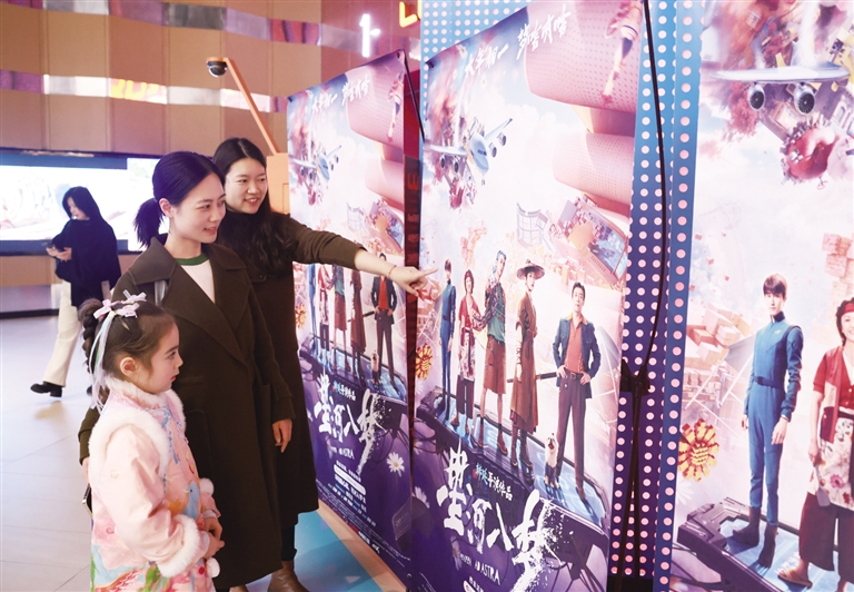 2月25日,观众在湖北省武汉市一家影城观看电影预告宣传栏。 据网络平台数据,2026年年度电影总票房(含预售)突破90亿。 新华社发 赵军 摄