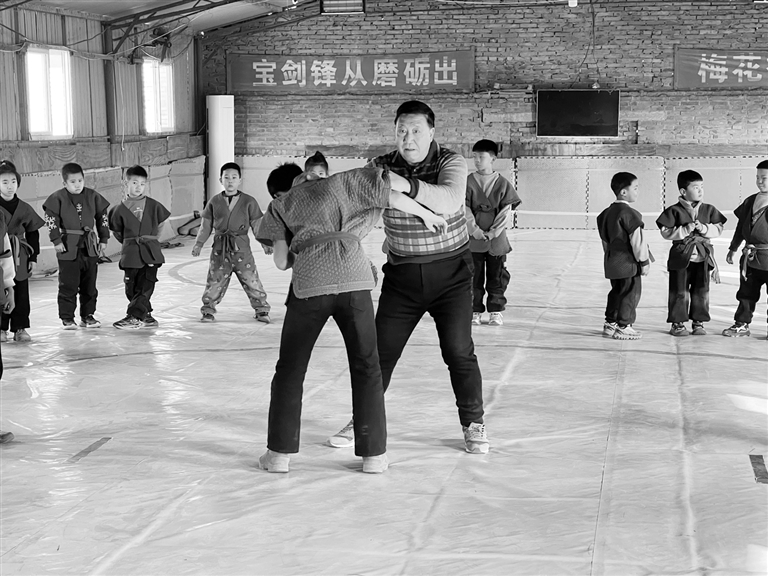 年过七旬的白鹤江,出身快跤世家,曾效力省专业队。如今,他守着这片位于莲池区五尧镇南沟头村的训练场,免费授徒,一晃已十余载。寒假里,国术馆的操练声从未间断。