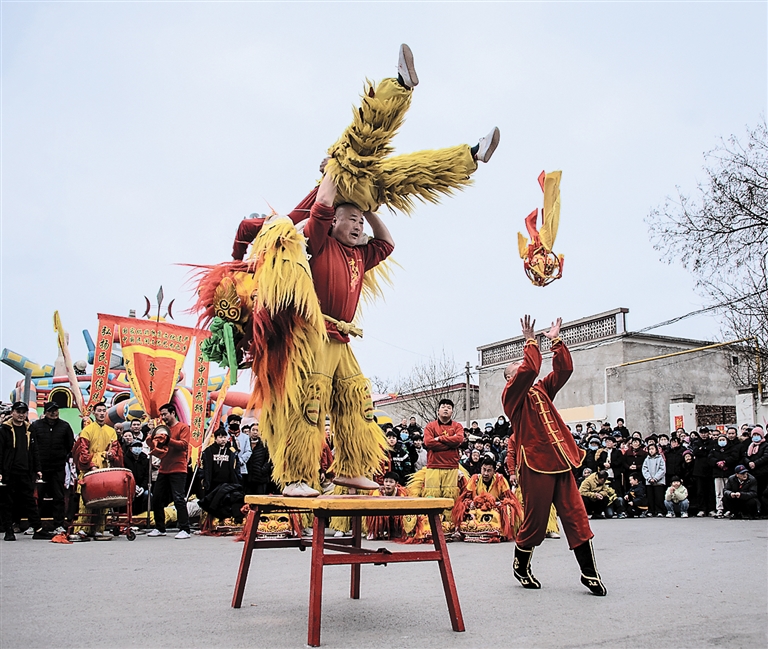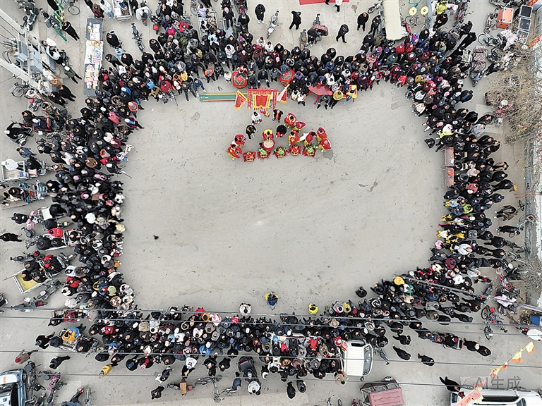热闹的鼓点,是春天最快的节奏。这场乡野演出,不仅是邻里相聚的温情时刻,更是乡亲们在元宵节前,为马年讨的一份头彩与吉祥。 曹少伟 摄影报道