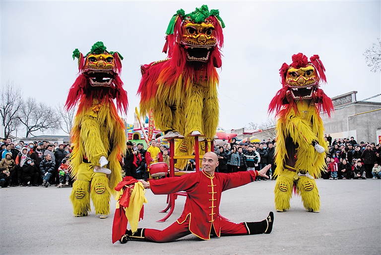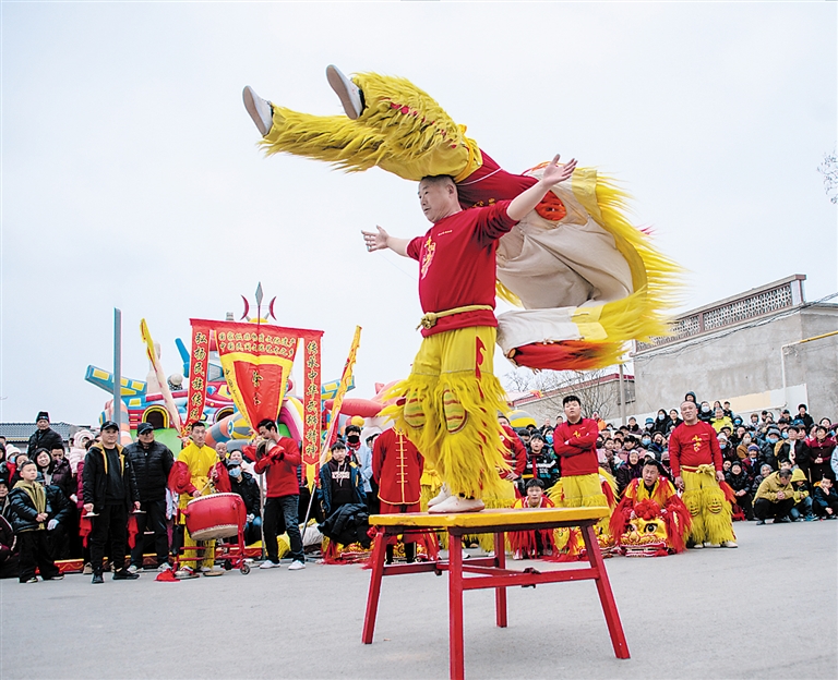 锣鼓喧天,乡韵自来。正月十五前夕,徐水县伍极村特邀徐水南北里凯东龙狮舞艺术团前来助兴。雄狮翻滚,红绸飞舞,引狮郎身手矫健,每一个腾跃都赢得乡亲们满堂喝彩。