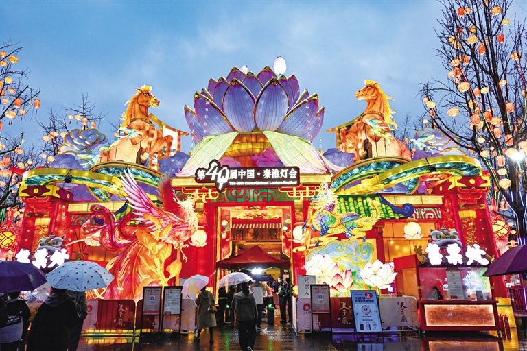 ▼3月1日,人们在江苏省南京市夫子庙景区赏灯游玩。 新华社发(杨素平 摄)